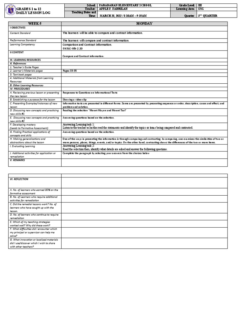 GRADES 1 to 12 Teacher: APPLE F. FADRILAN Learning Area: ENG