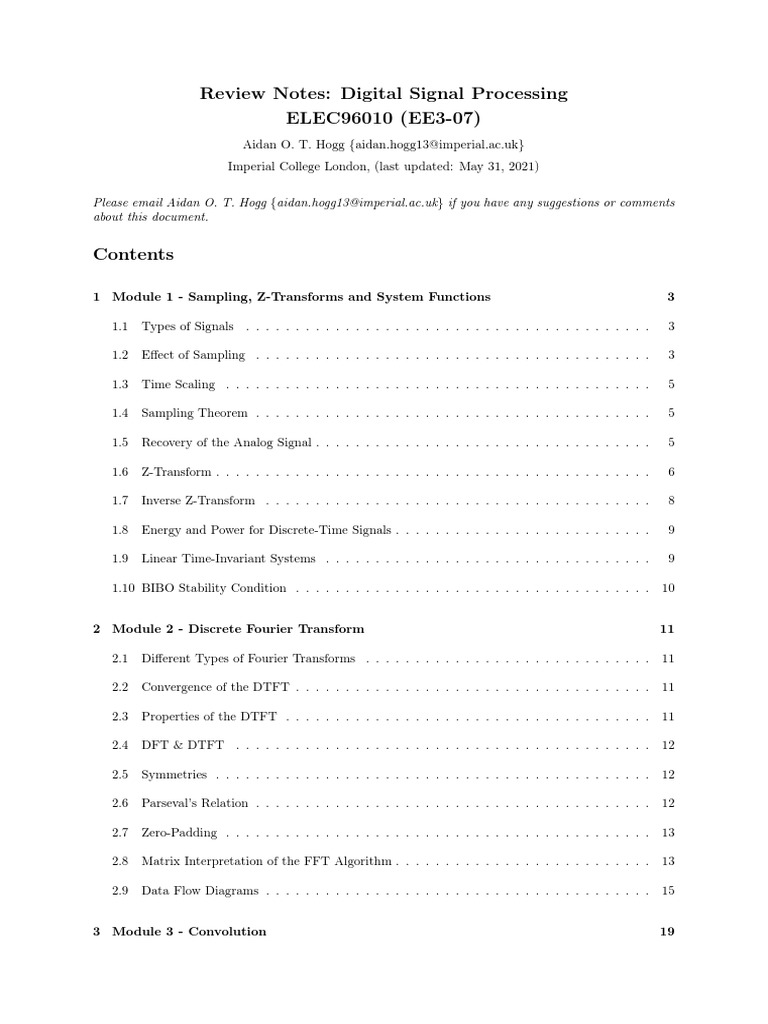 Imperial College London ELEC96010 (EE3-07) - Digital Signal Processing