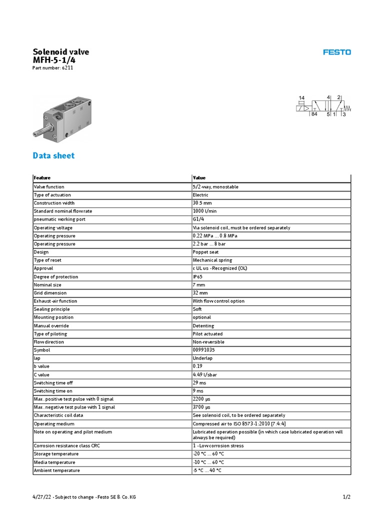 4/27/22 - Subject to change - Festo SE & Co. KG 1/2