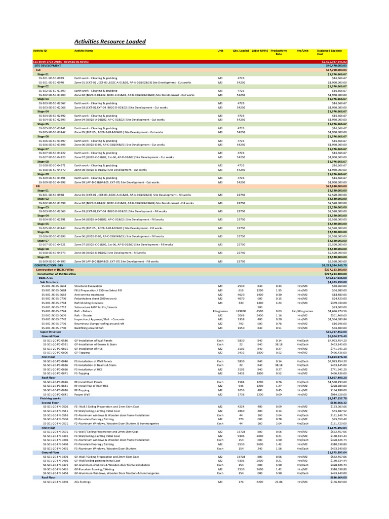 SS-S02-2C-SS-0744 Inspection / Approval/ Raft - Concrete M3 1958 400 0.20 Hrs/M3 $1,534,680.84