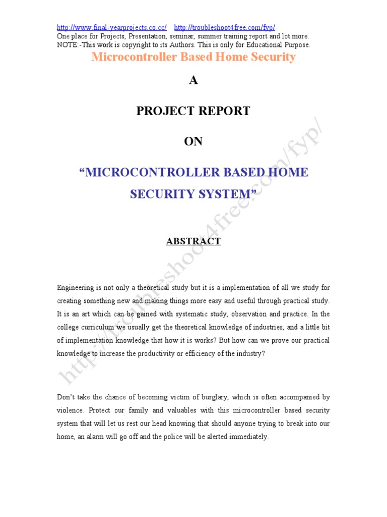 Microcontroller Based Home Security A PROJECT REPORT ON MICROCONTROLLER BASED HOME SECURITY SYSTEM