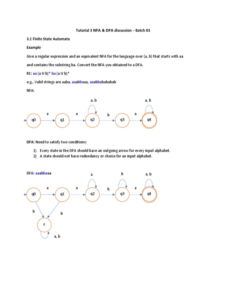 Tutorial 3 NFA & DFA discussion – Batch 03