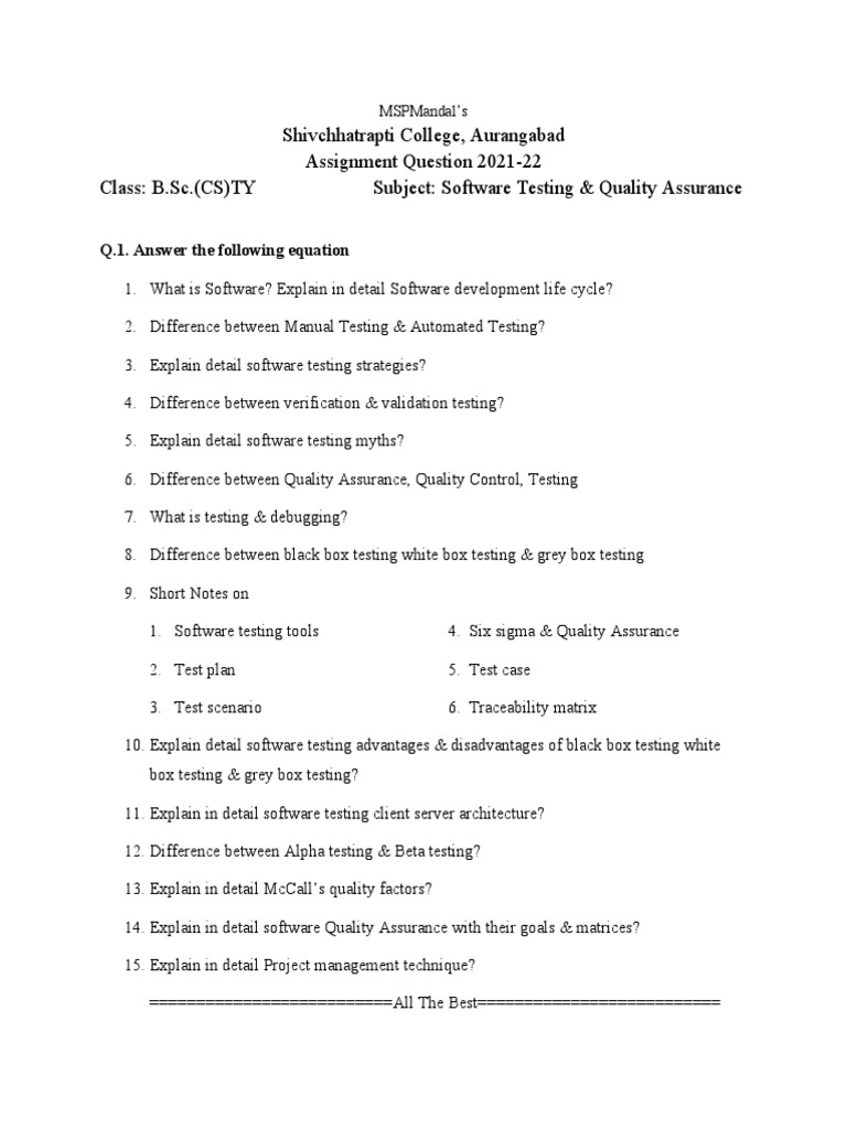 Class: B.Sc.(CS)TY Subject: Software Testing & Quality Assurance