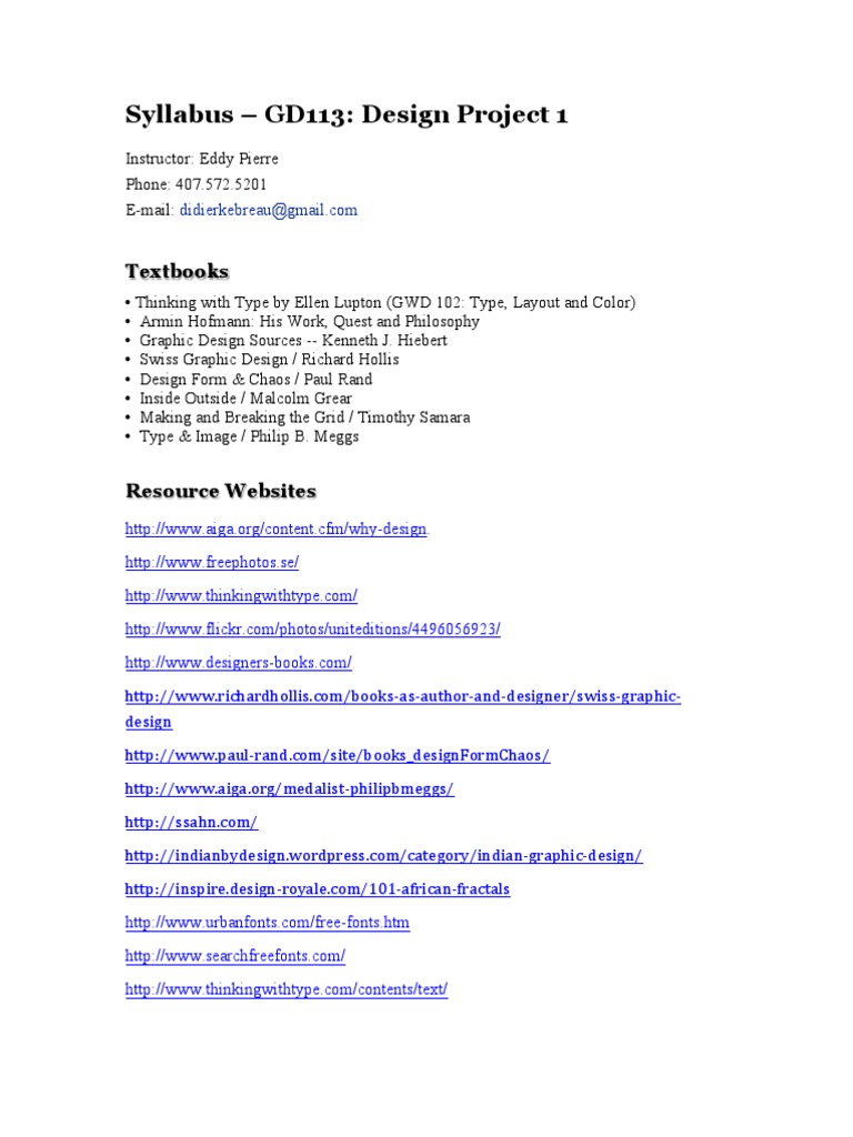 Thinking with Type by Ellen Lupton (GWD 102: Type, Layout and Color) Armin Hofmann: His Work, Quest and Philosophy Graphic Design Sources -- Kenneth J. Hiebert Swiss Graphic Design / Richard Hollis Design Form & Chaos / Paul Rand Inside Outside / Malcolm Grear Making and Breaking the Grid / Timothy Samara Type & Image / Philip B. Meggs