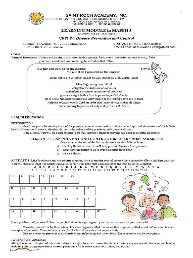 LESSON 1: I CAN PREVENT AND CONTROL DISEASES FROM PARASITES