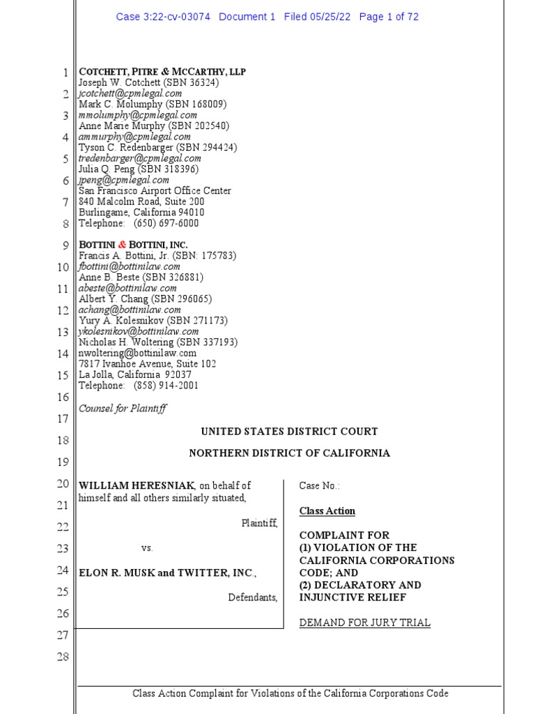 1 131. A justiciable, present controversy exists between the parties. Defendant Musk signed a