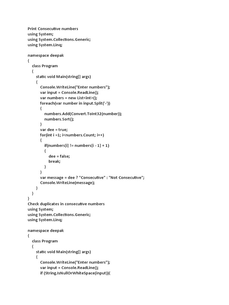 Print Consecutive numbers
