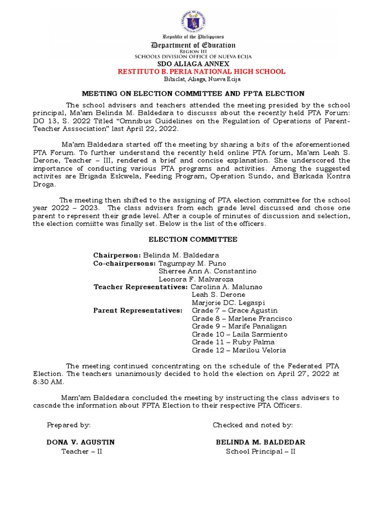 cascade the information about FPTA Election to their respective PTA Officers.