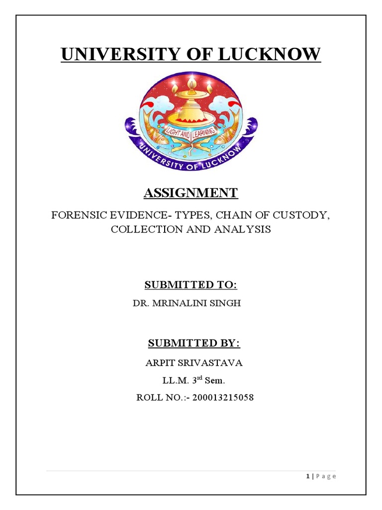 FORENSIC EVIDENCE- TYPES, CHAIN OF CUSTODY,