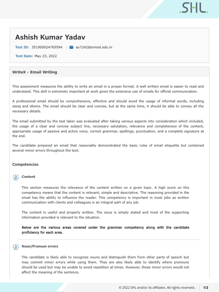 © 2022 SHL and/or its affiliates. All rights reserved.. 1/2