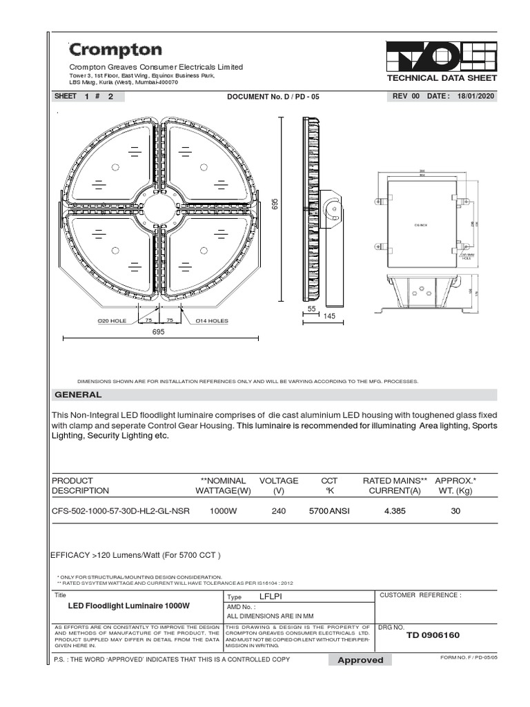 EFFICACY >120 Lumens/Watt (For 5700 CCT )