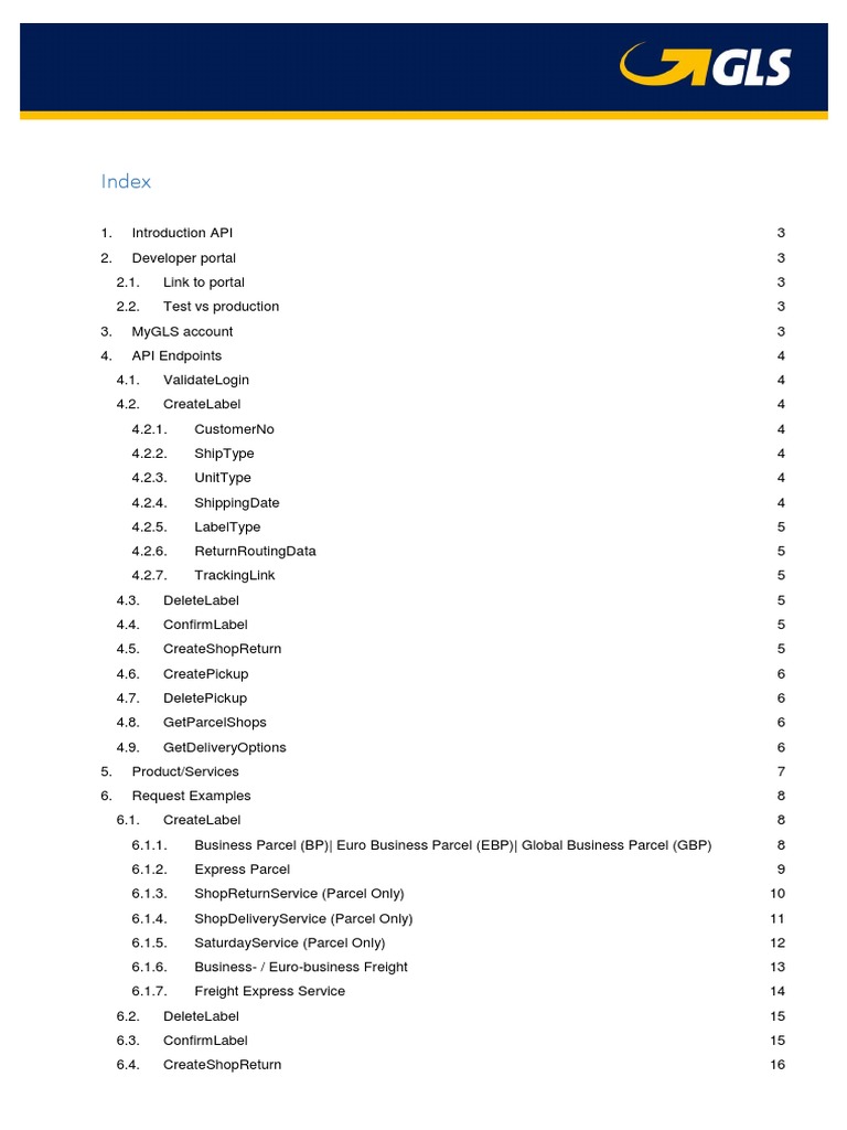 document will explain which API end-points are available and how to use them. For every GLS Product