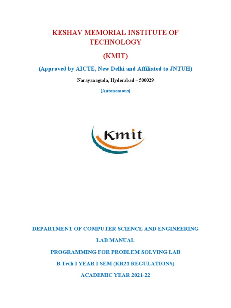 PROGRAMMING FOR PROBLEM SOLVING LAB