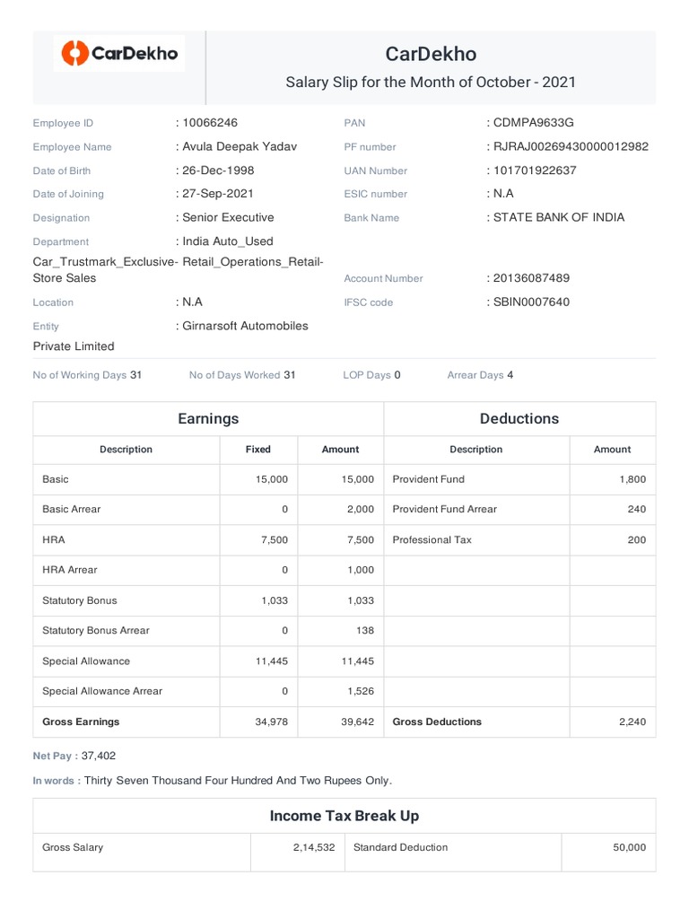 Total Gross Salary (Current Employer) 2,14,532 Net Taxable Salary 1,52,292