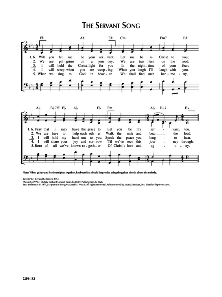 Music: SERVANT SONG; Richard Gillard; harm. by Betty Pulkingham, b. 1928.