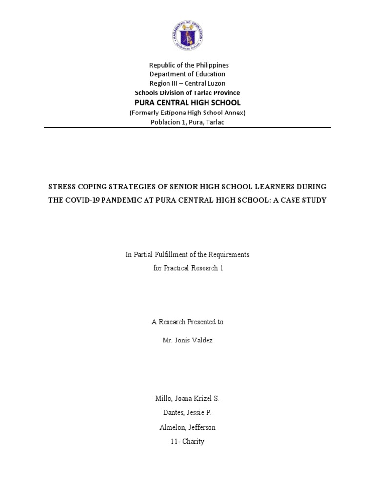 study is the stress and coping mechanism of the Senior High School Students in Pura Central High