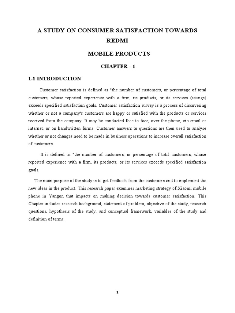 Primary data has been used for the purpose of study of customer satisfaction of Redmi
