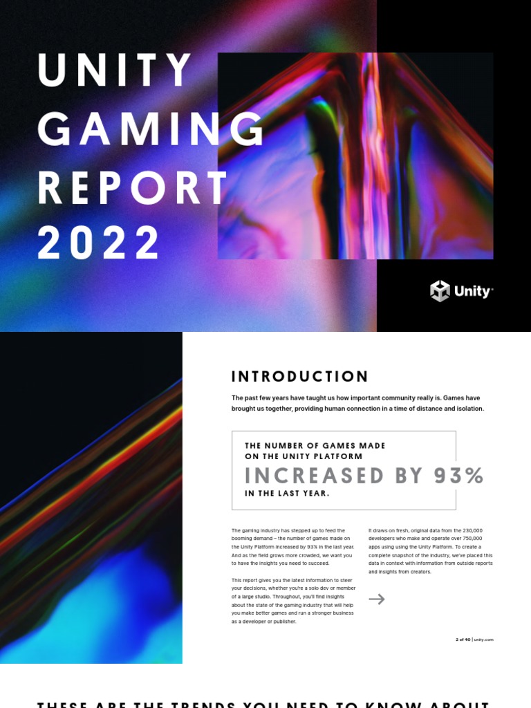 the Unity Platform increased by 93% in the last year. apps using using the Unity Platform. To create a