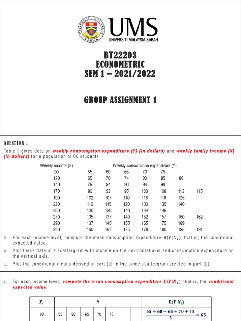 a. For each income level, compute the mean consumption expenditure 𝑬 𝒀 𝑿𝒊 , that is, the conditional