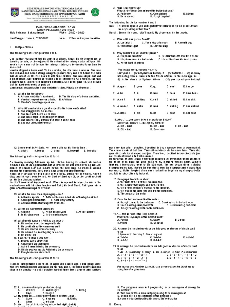 C. Adi felt unwell during the ceremony 21. 5. Arrange the jumbled words below into good sentences of simple past