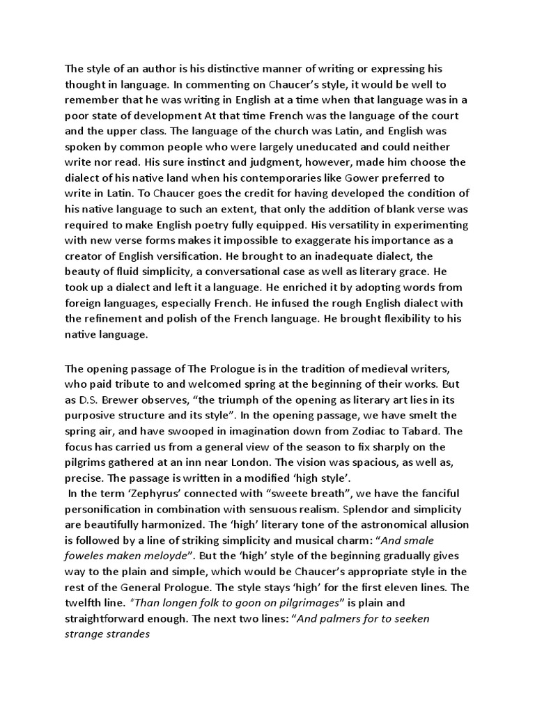 remoteness from everyday life.. In general, Chaucer’s style is direct, plain,