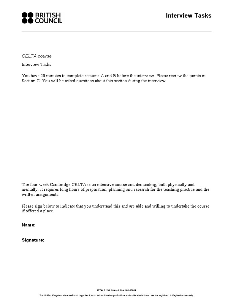 You have 20 minutes to complete sections A and B before the interview. Please review the points in