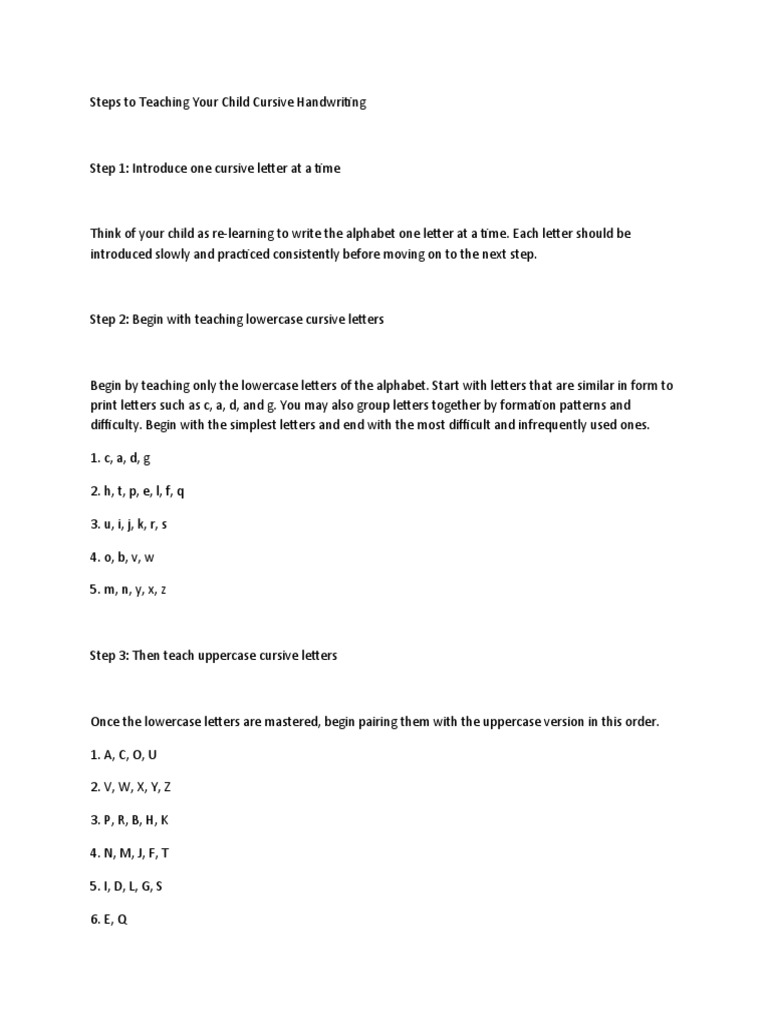 Steps to Teaching Your Child Cursive Handwriting