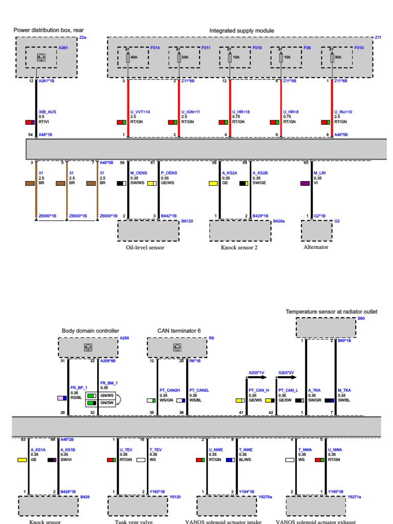 Knock sensor Tank vent valve VANOS solenoid actuator intake VANOS solenoid actuator exhaust