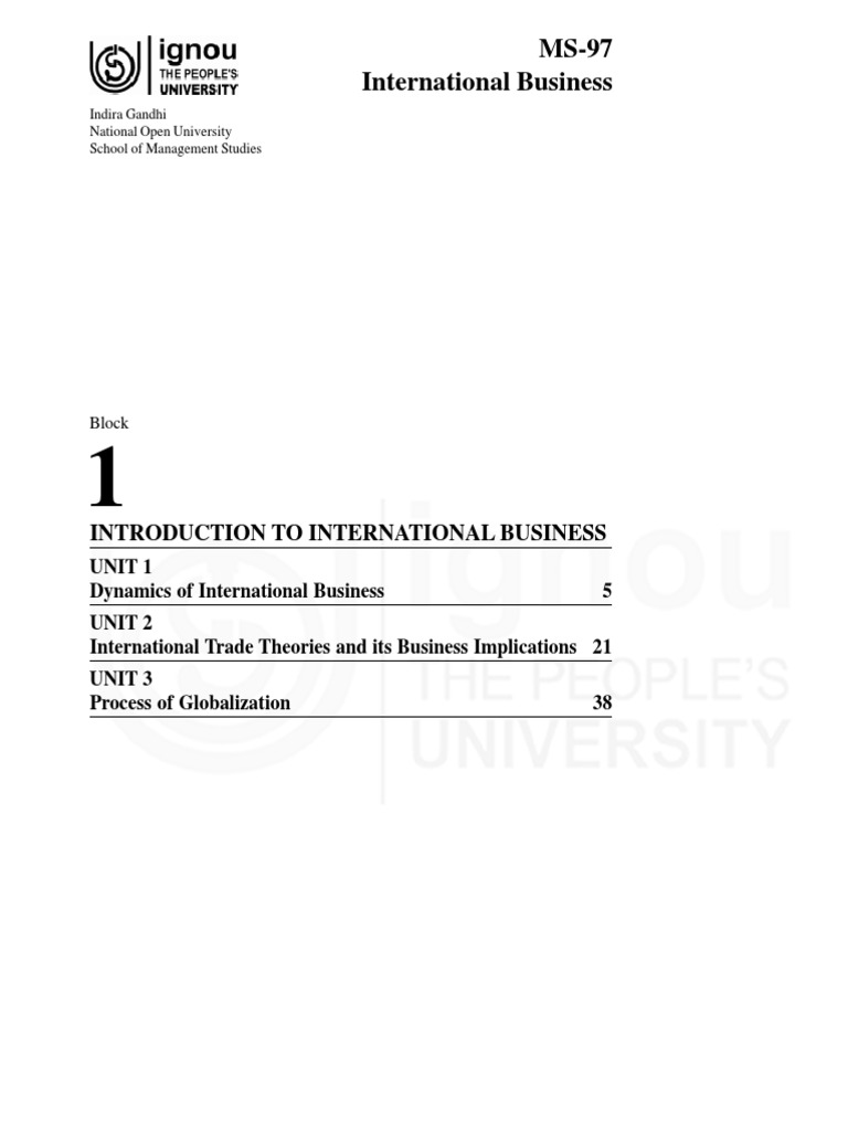 UNIT 1 DYNAMICS OF INTERNATIONAL Business
