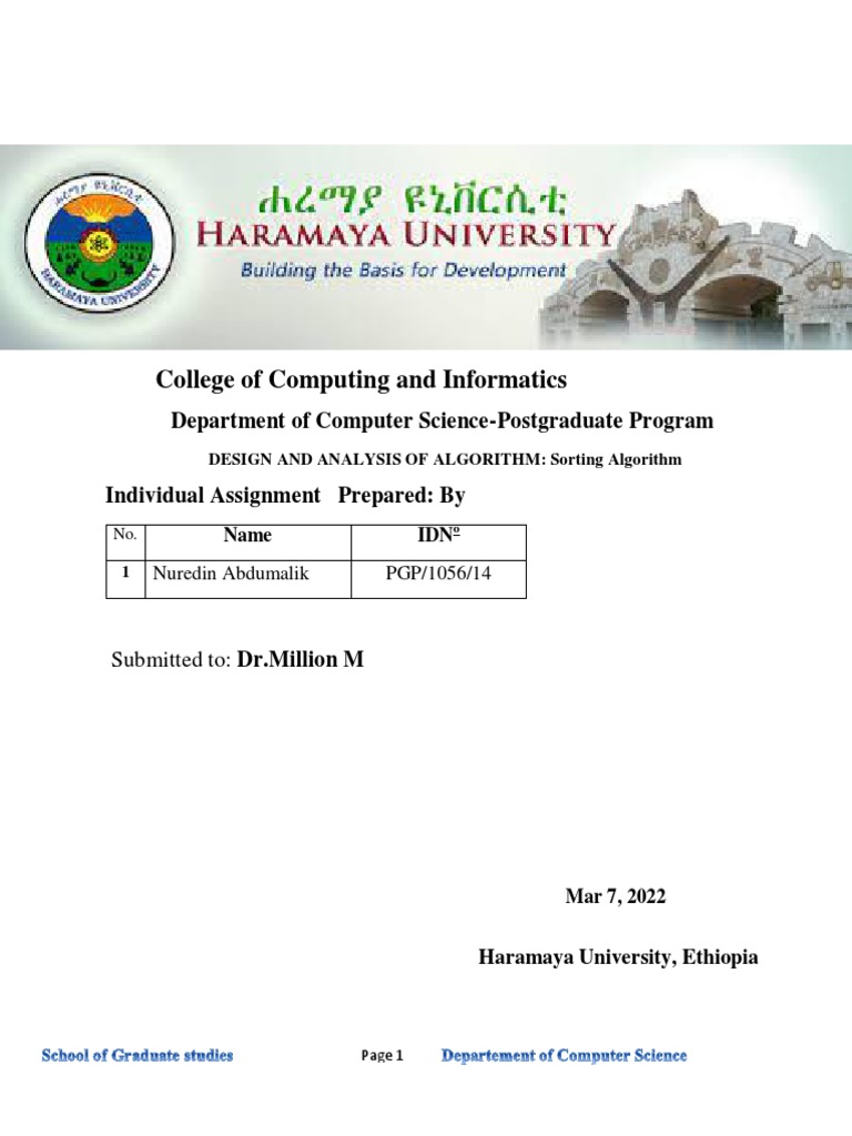DESIGN AND ANALYSIS OF ALGORITHM: Sorting Algorithm