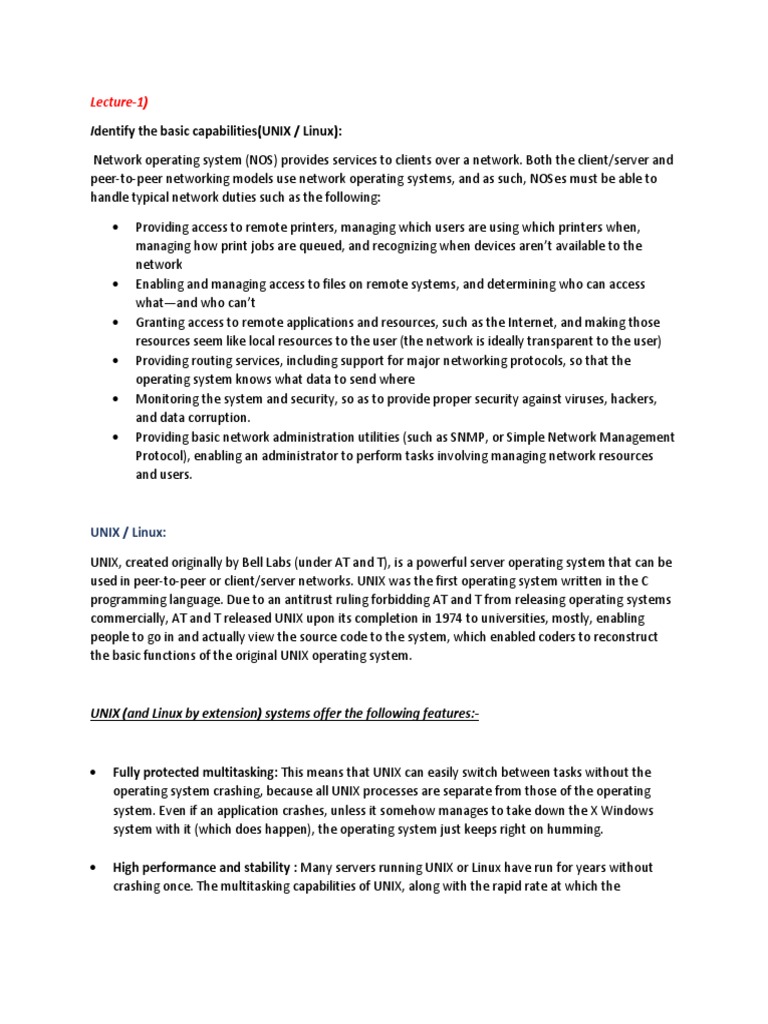 Network operating system (NOS) provides services to clients over a network. Both the client/server and