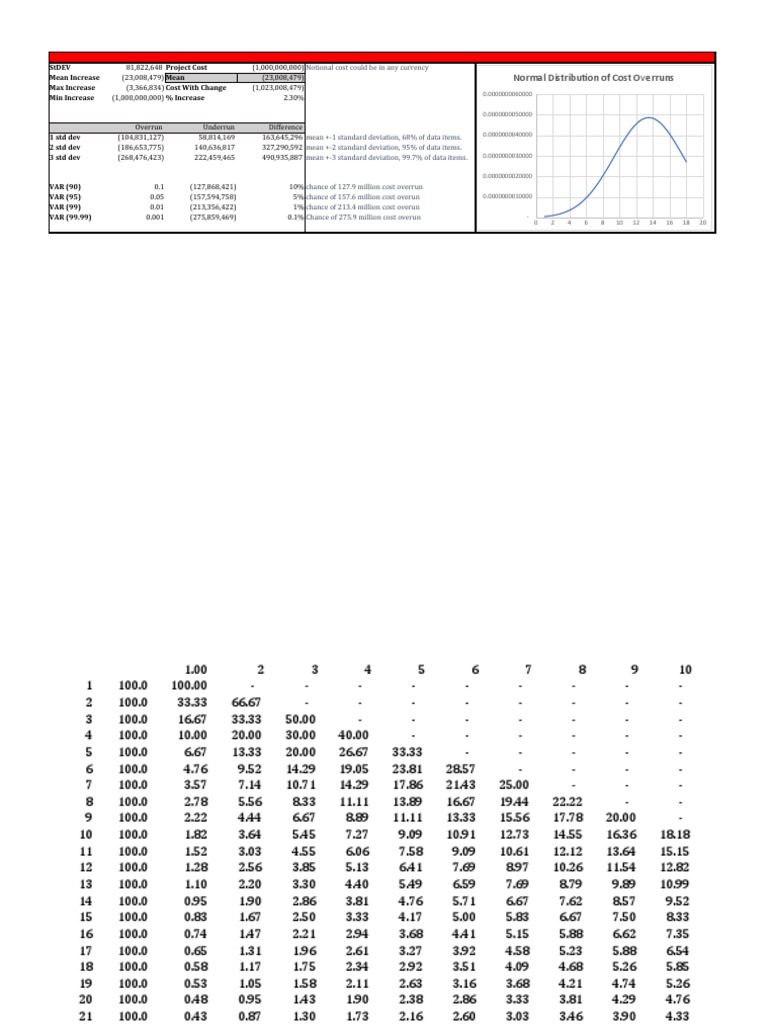 VAR (95) 0.05 (157,594,758) 5% chance of 157.6 million cost overun 0.0000000010000