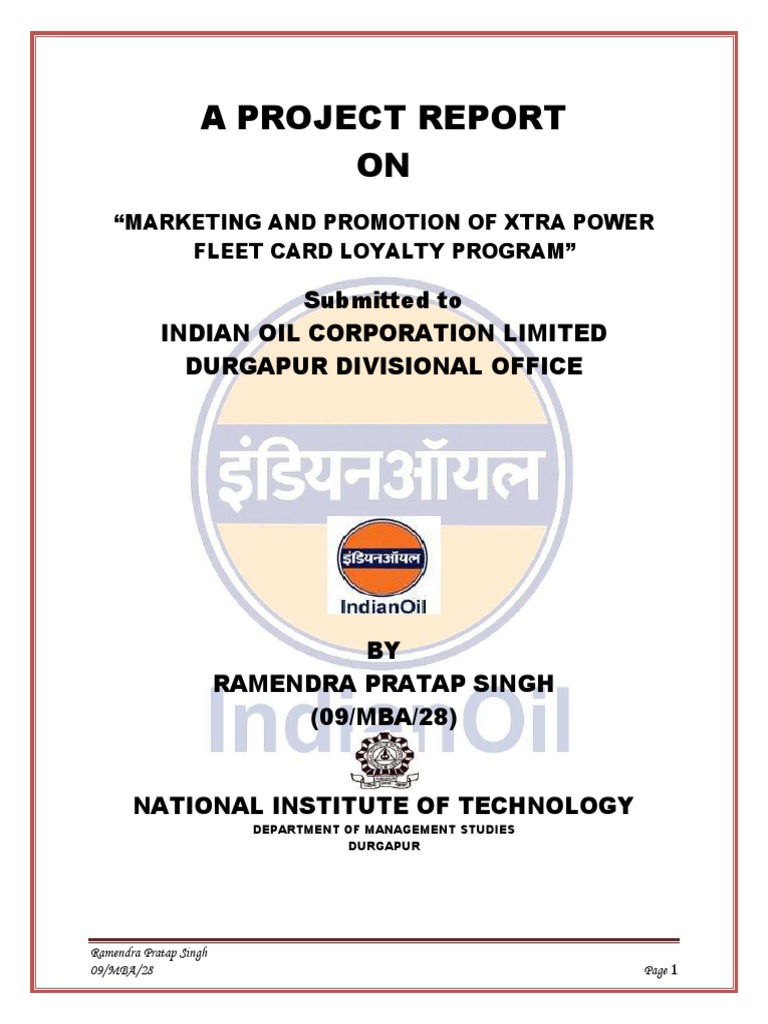 Project Title: ―Marketing and Promotion of Xtra POWER FLEET CARD Loyalty Program‖.