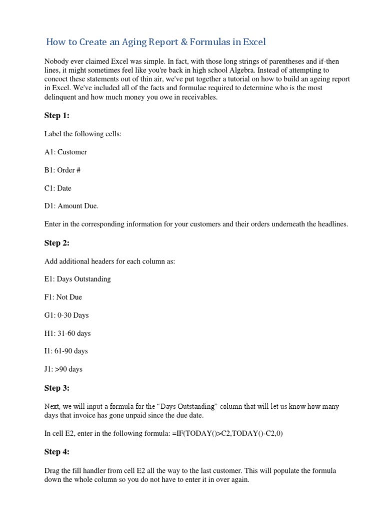 How to Create an Aging Report & Formulas in Excel