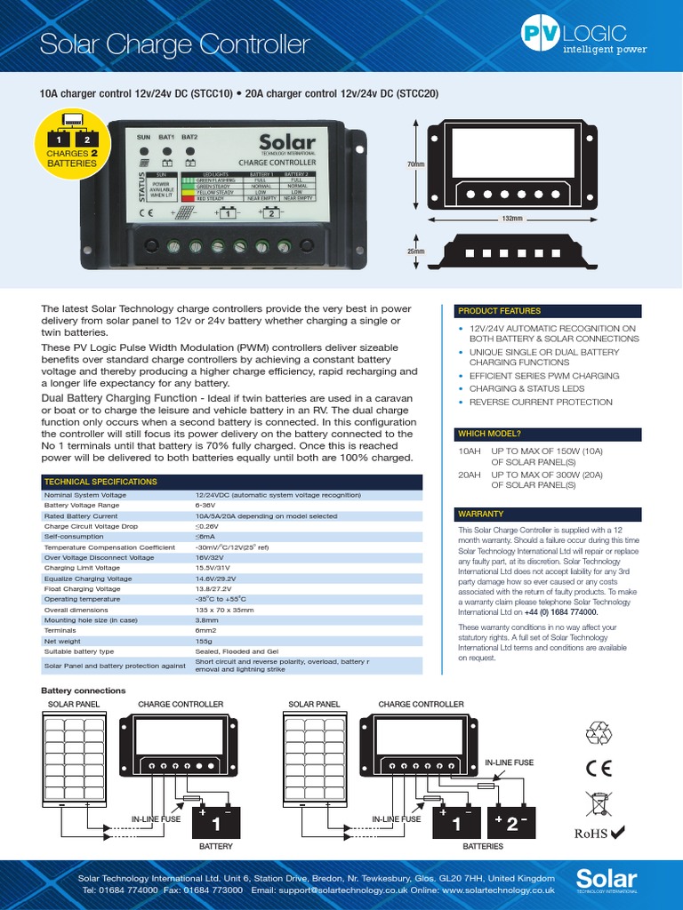 10A charger control 12v/24v DC (STCC10) • 20A charger control 12v/24v DC (STCC20)