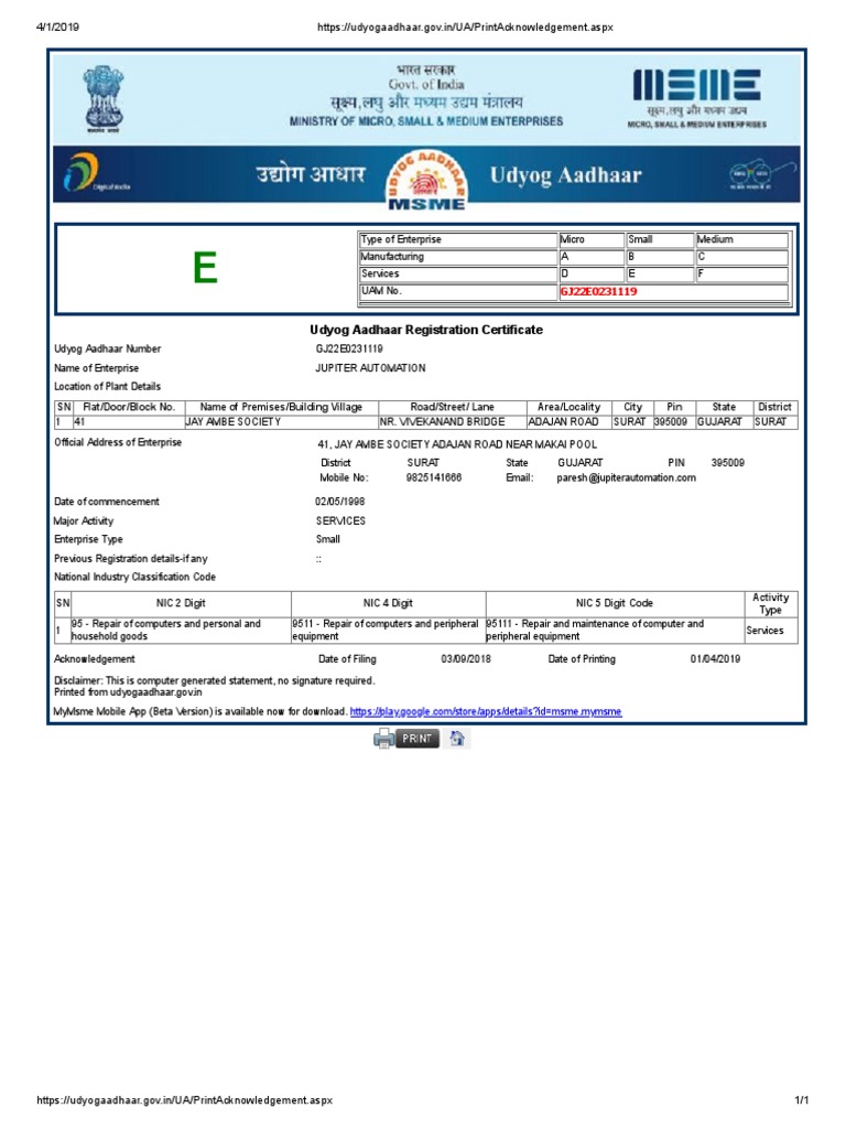 4/1/2019 https://udyogaadhaar.gov.in/UA/PrintAcknowledgement.