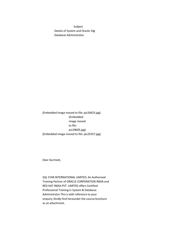 SQL STAR INTERNATIONAL LIMITED, An Authorised Training Partner of ORACLE CORPORATION INDIA and RED HAT INDIA PVT. LIMITED offers Certified Professional Training in System & Database Administrator.This is with reference to your enquiry; KIndly find hereunder the course brochure as an attachment.