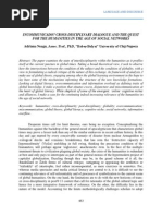 the same time (i.e. That the discourse is always connected to the setting and places where it is produced) Discourse Centering and Global Coherence Before Wikis, no author had to fret too much about identifying how his or her own discourse delimited the sayable or implied corrolary truths. It was up to readers of knowledge products to understand a text within its intellectual milieu. Sure, pre-Wiki knowledge had its colleagues, gatekeepers, imprimaturs and detractors to stay in dialogue with, however, there was never a communicative module designed to reign in the dispersed flows of knowledge into the delta of dialogism (cheesy metaphor?). In the meantime, we have no way to bridge Dershowitz's The Case for Israel with Edward Said's Blaming the Victims. Both books will sit stupidly in the library stacks waiting for a reconciliation of meaning. It is what I call global coherence of a world mind. This is nothing new. M.J. Baker approximates to this idea with his dialogical reasoning or Grosz's discourse centering.15 The premise is that if two, disagreeing minds are forced to collaborate towards coherence, a dialogical communicative exercise will ensue (my Master's Thesis sets about explaining exactly how coherence is essentially forced out of two members from irreconcilable discourse communities). Heidi In my move, I have lost some sources and an important book that I cannot access in time. With it I can finish my final subsection which is on: