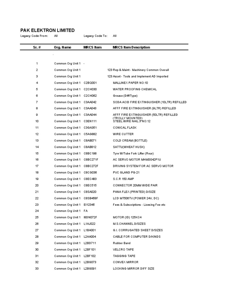Sr. # Org. Name MRCS Item MRCS Item Description