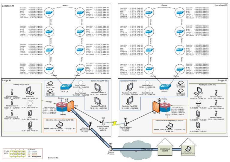 Barge #1 Camera net (VLAN 100) Camera net (VLAN 200) Barge #2