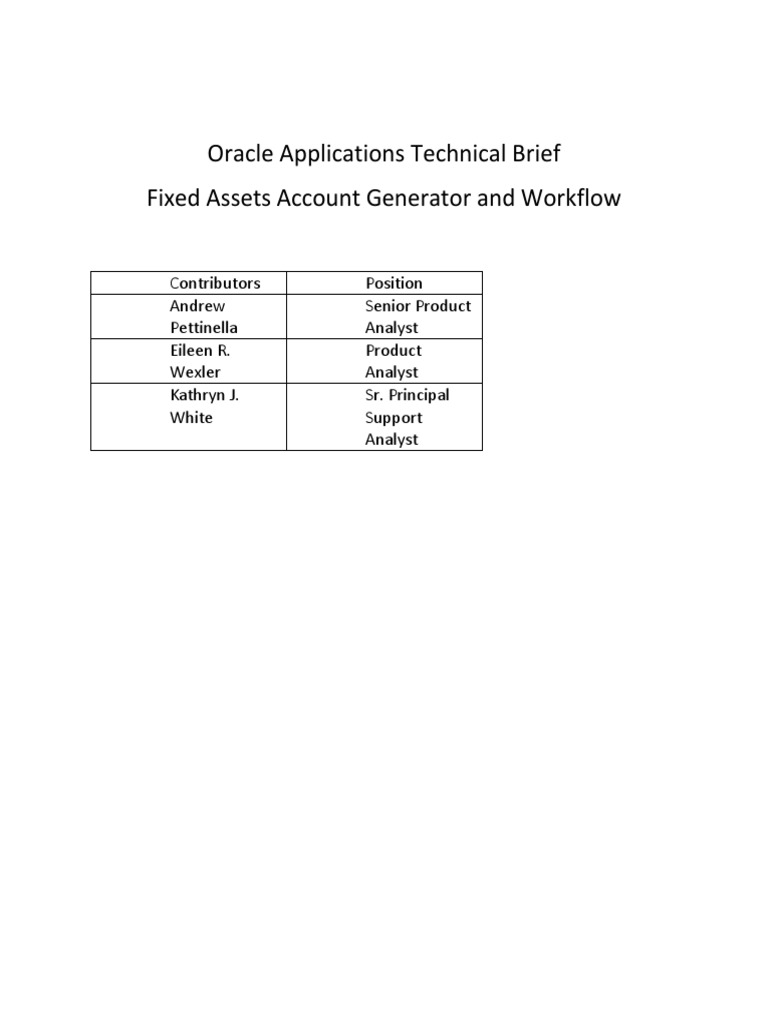 knowledge of Oracle Assets, flexfield definitions, and a working knowledge of Oracle