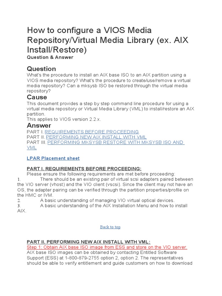 Step 1: Obtain AIX base ISO image from ESS and store on the VIO server.