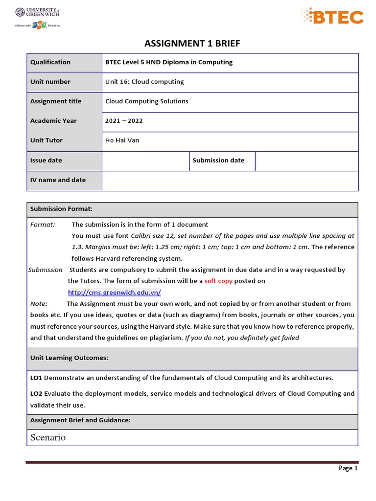 LO1 Demonstrate an understanding of the fundamentals of Cloud Computing