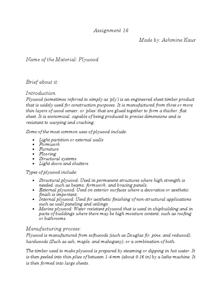 Name of the Material: Plywood