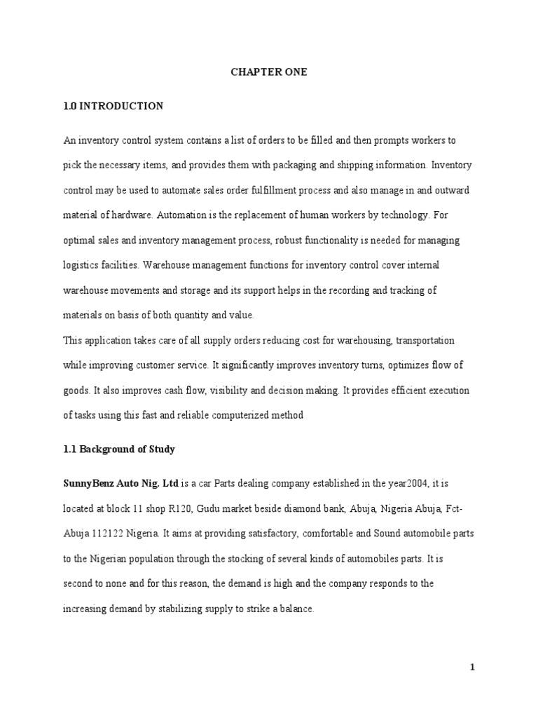 The main objective of this study is to Design and Implementation of Autoshop inventory