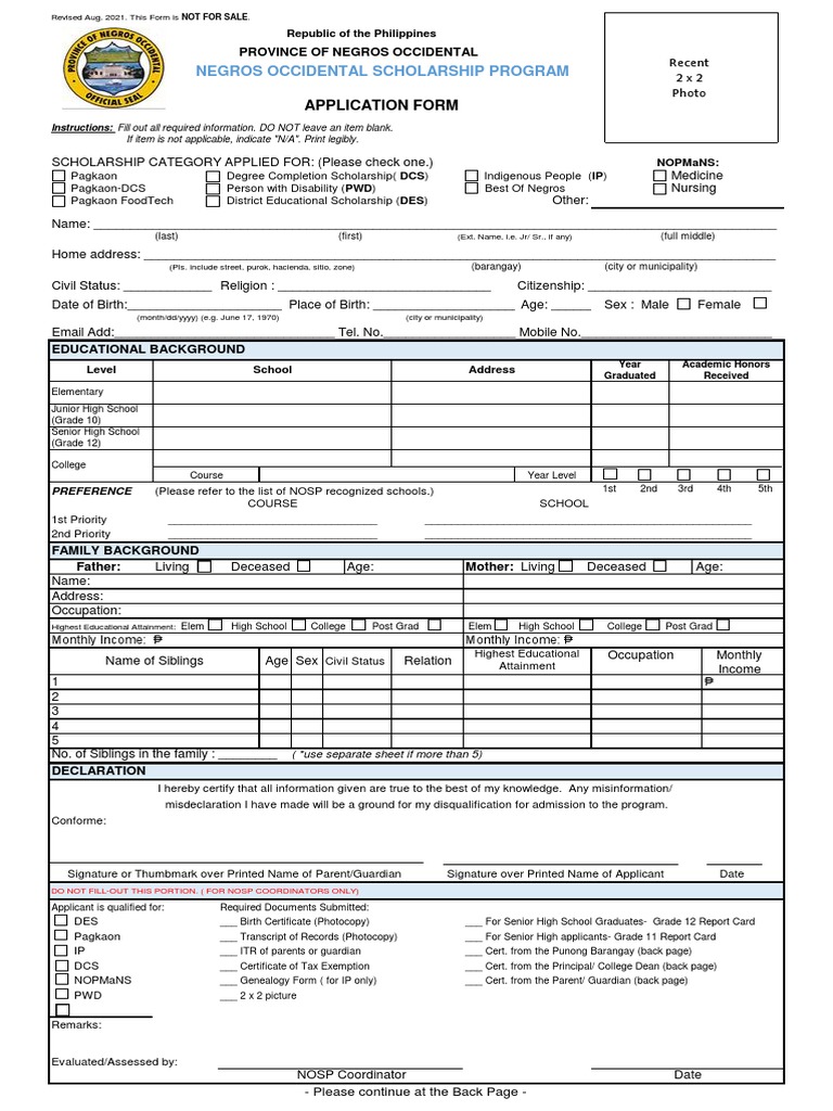 NEGROS OCCIDENTAL SCHOLARSHIP PROGRAM 2x2