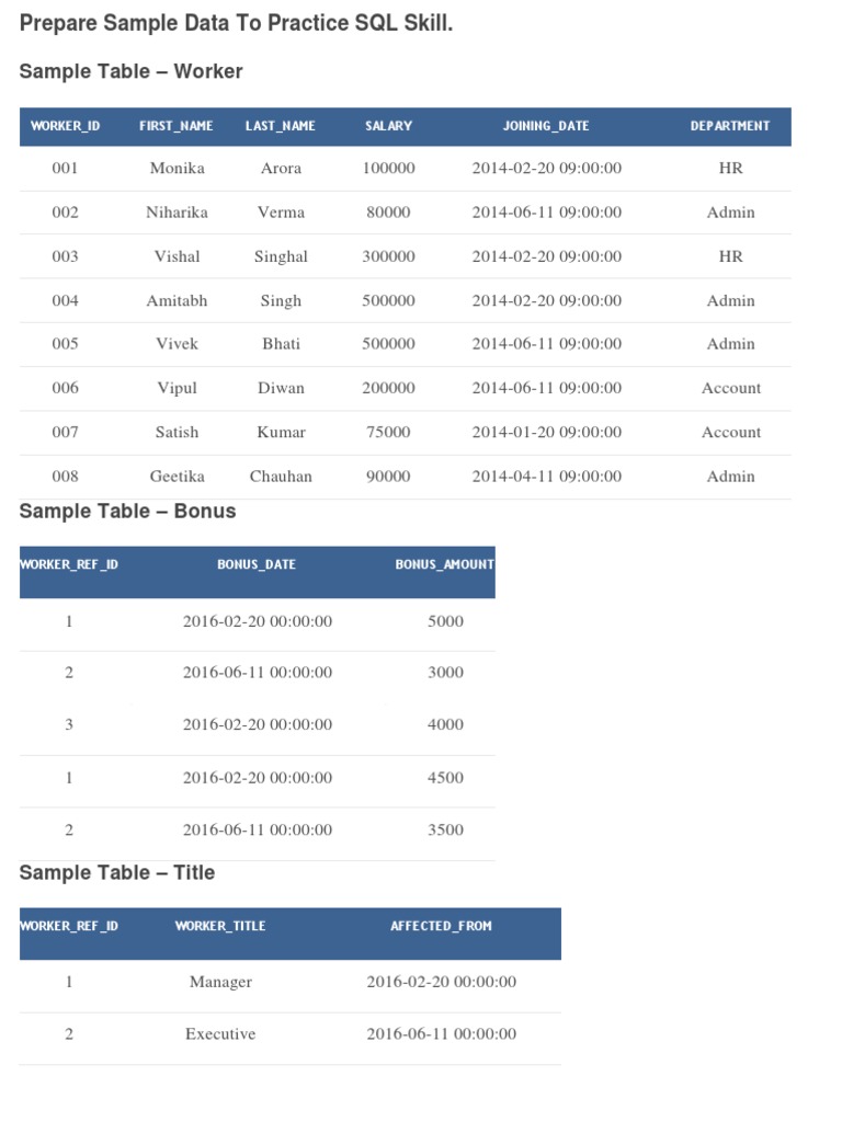 50 SQL Query Questions and Answers for Practice.