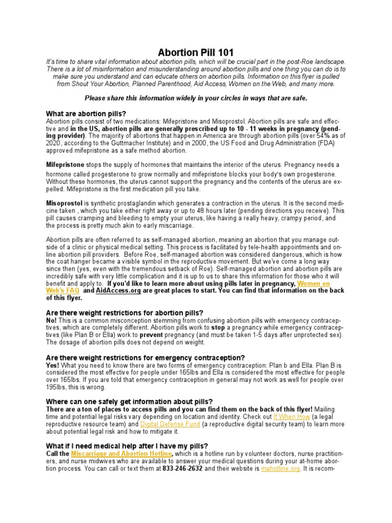 make sure you understand and can educate others on abortion pills. Information on this flyer is pulled
