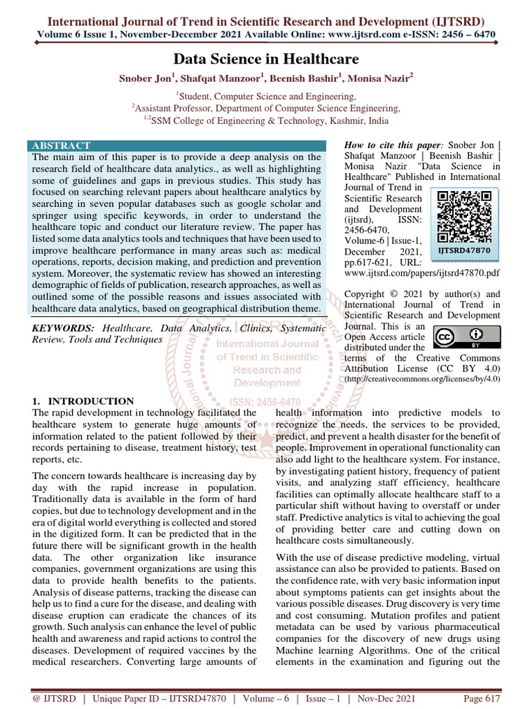 @ IJTSRD | Unique Paper ID – IJTSRD47870 | Volume – 6 | Issue – 1 | Nov-Dec 2021 Page 617
