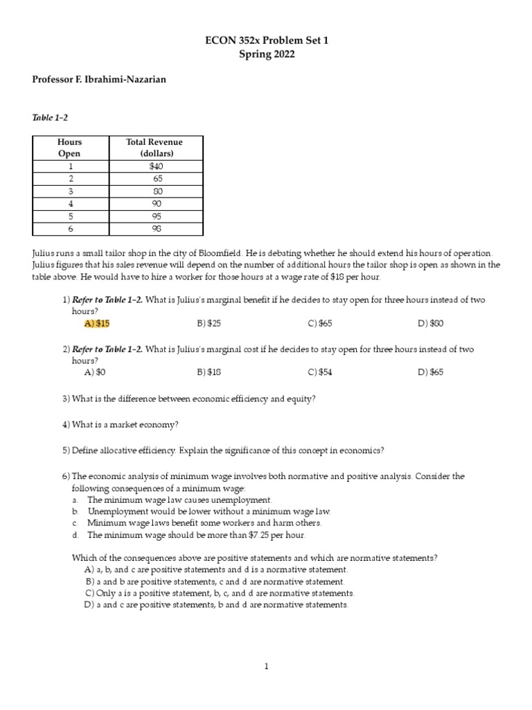 ECON 352 Problem Set 1 (With Key)
